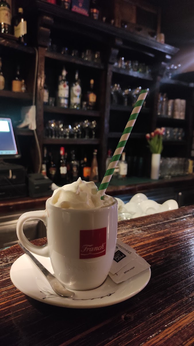 Pleasant waiter, tasty rustic woody interior and fine hot chocolate.