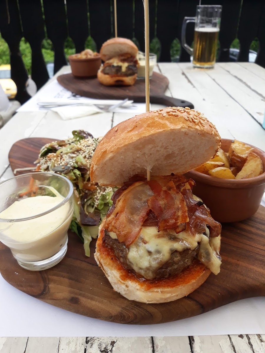 The interior echoes with a rustic charm, reminiscent of a classic English pub yet carrying its own local spirit. Dark woods, vintage accents, and thoughtful touches create a setting that’s unpretentious and welcoming. Whether you come in for a quiet evening or a casual catch-up with friends, the pace is easy, and the mood quietly convivial.